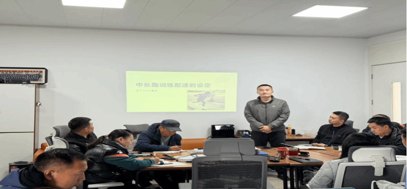 活动开始,赵宇飞老师结合中长跑训练核心要点,系统讲解训练理论基础。他指出中长跑训练需兼顾有氧耐力与无氧耐力提升,遵循“循序渐进、安全第一”原则,重点把控呼吸节奏、动作规范与体能分配。随后,他通过案例分析,梳理不同学段学生生理特点,提出针对性训练方案:基础阶段以匀速跑、间歇快走为主,培养跑步姿态与呼吸配合;提升阶段加入间歇跑、爬坡跑等专项训练,搭配核心力量训练突破耐力瓶颈。